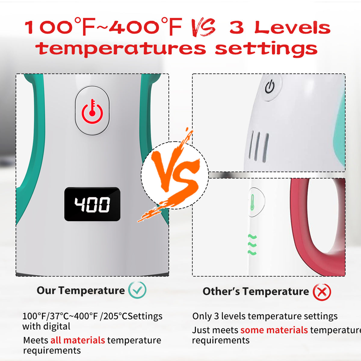 ✅ 14-Level Temp Control (100°F–400°F)